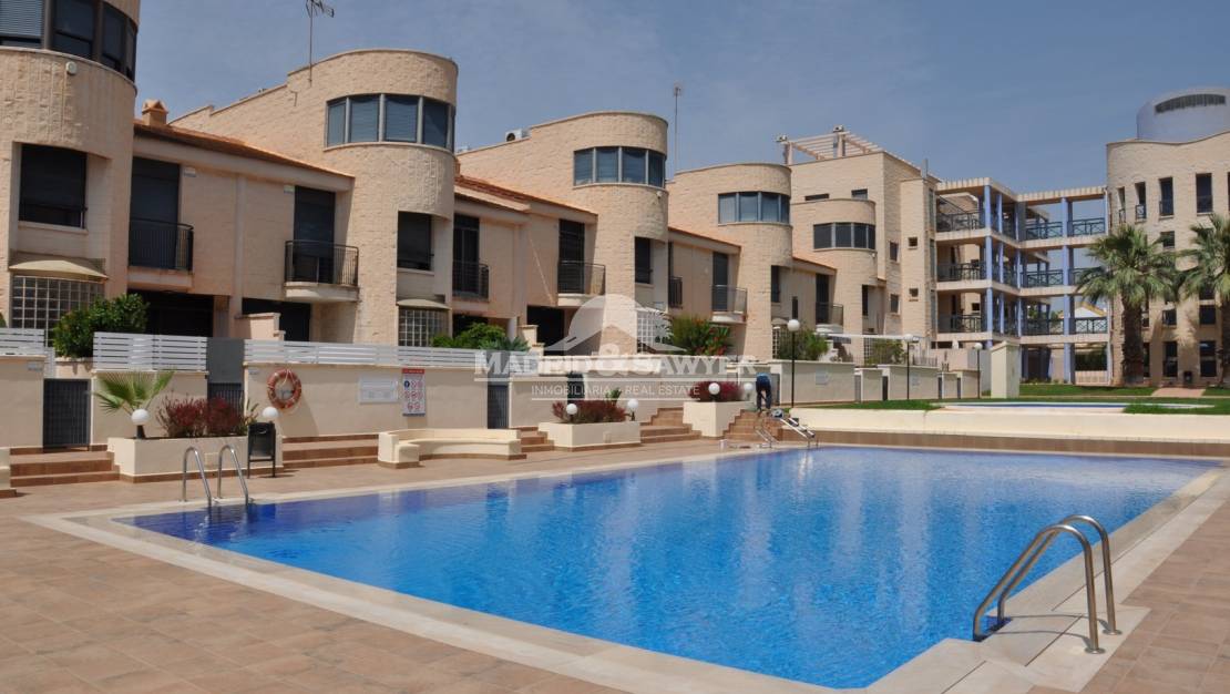 Este encantador apartamento, situado en Aguamarina, Cabo Roig, a solo 100 metros de la playa esta a la venta! Hay 2 entradas a la propiedad, a través del complejo privado o directamente desde la calle. Al entrar a la propiedad, nos encontramos en el pasillo con el salón enfrente y a la derecha la cocina totalmente equipada, la cocina tiene acceso a una terraza trasera con armarios de almacenamiento. A la derecha del salón encontramos los 2 dormitorios (el principal tiene cuarto de baño en suite) y el baño completo. Pasando por el salón se accede al jardín delantero donde también hay barbacoa y acceso a la calle. El complejo cerrado tiene 2 hermosas piscinas y un gran jardín comunitario. La propiedad tiene una ubicación ideal con bares, restaurantes, farmacia, peluquería, supermercado y centro medico todo a poca distancia, por lo que no es necesario un coche. Hay una parada de taxis al final de la calle y también esta el servicio de autobús local que ofrece acceso a toda la Costa Blanca. Los aeropuertos de Alicante y Corvera están aproximadamente a 40 minutos en coche, hay tres campos de golf de 18 hoyos a sólo 10 minutos en coche y el centro comercial Zenia Boulevard está a sólo 5 minutos en coche.