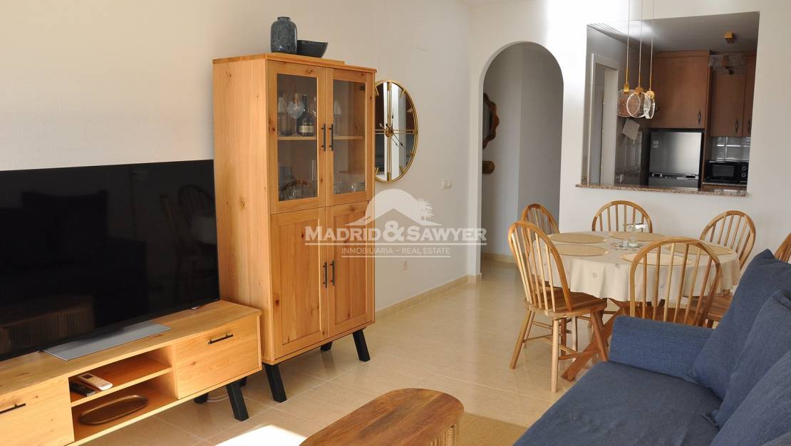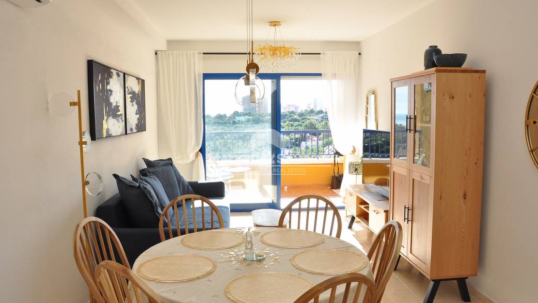 Magnifique appartement T3 (2 chambres, 2 salles de bain) disponible de mai à septembre. En entrant, vous trouverez un hall d'entrée avec la salle de bain sur la droite. Au fond, la cuisine américaine entièrement équipée donne sur un salon lumineux avec accès à un balcon offrant une vue imprenable sur la mer Méditerranée. À gauche de la cuisine se trouvent les deux chambres, chacune équipée de deux lits simples. La chambre principale dispose d'une salle de bain privative. Cet appartement est situé à Campoamor et offre une vue exceptionnelle sur la pinède et la mer. Proche de toutes commodités, il se trouve à environ 5 minutes en voiture du centre commercial La Zenia Boulevard, à environ 10 minutes de trois parcours de golf 18 trous et à environ 40 minutes des aéroports d'Alicante et de Corvera.