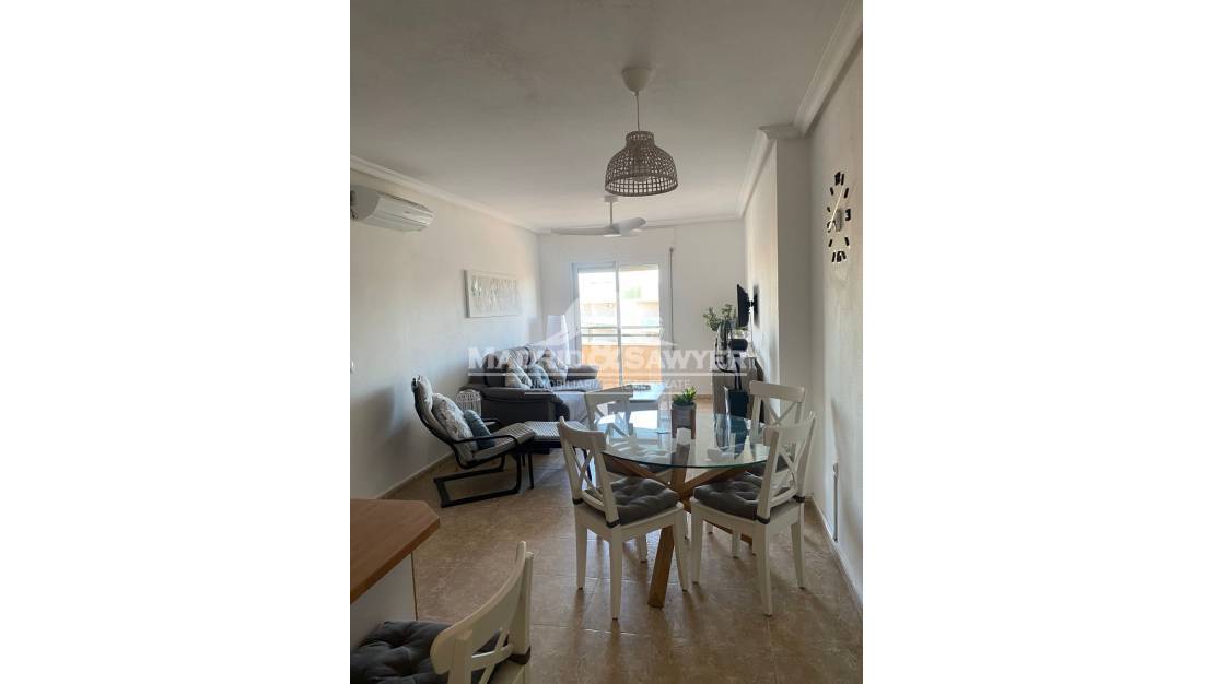 Beautiful apartment available for winter rentals in Aguamarina. Located in a popular area with all amenities within easy reach. The property features two bedrooms, a full bathroom, and a communal swimming pool. One bedroom has a double bed, and the other has two single beds. It is just steps from a supermarket, pharmacy, bars, and restaurants, approximately a 5-minute drive from La Zenia Boulevard shopping center, a 10-minute drive from three 18-hole golf courses, and about a 40-minute drive from Alicante and Corvera airports.