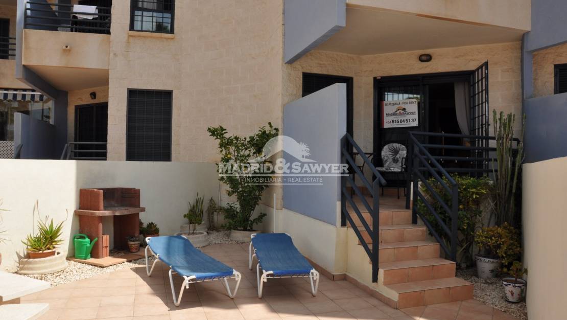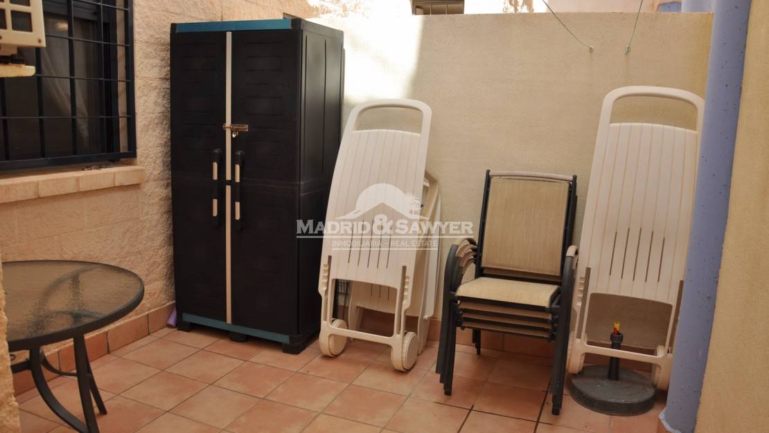 Este encantador apartamento, situado en Aguamarina, Cabo Roig, a solo 100 metros de la playa esta a la venta! Hay 2 entradas a la propiedad, a través del complejo privado o directamente desde la calle. Al entrar a la propiedad, nos encontramos en el pasillo con el salón enfrente y a la derecha la cocina totalmente equipada, la cocina tiene acceso a una terraza trasera con armarios de almacenamiento. A la derecha del salón encontramos los 2 dormitorios (el principal tiene cuarto de baño en suite) y el baño completo. Pasando por el salón se accede al jardín delantero donde también hay barbacoa y acceso a la calle. El complejo cerrado tiene 2 hermosas piscinas y un gran jardín comunitario. La propiedad tiene una ubicación ideal con bares, restaurantes, farmacia, peluquería, supermercado y centro medico todo a poca distancia, por lo que no es necesario un coche. Hay una parada de taxis al final de la calle y también esta el servicio de autobús local que ofrece acceso a toda la Costa Blanca. Los aeropuertos de Alicante y Corvera están aproximadamente a 40 minutos en coche, hay tres campos de golf de 18 hoyos a sólo 10 minutos en coche y el centro comercial Zenia Boulevard está a sólo 5 minutos en coche.