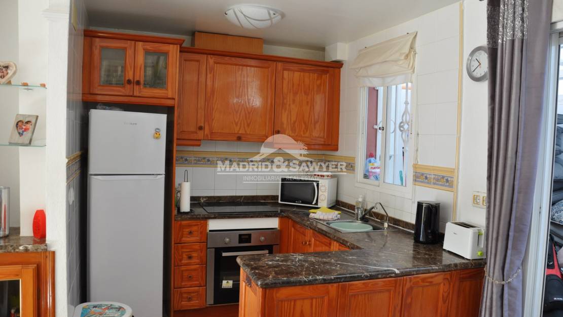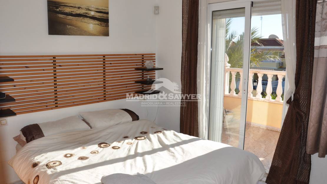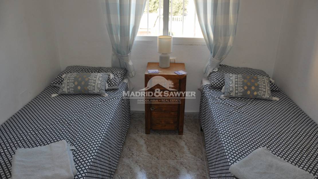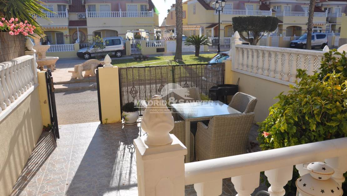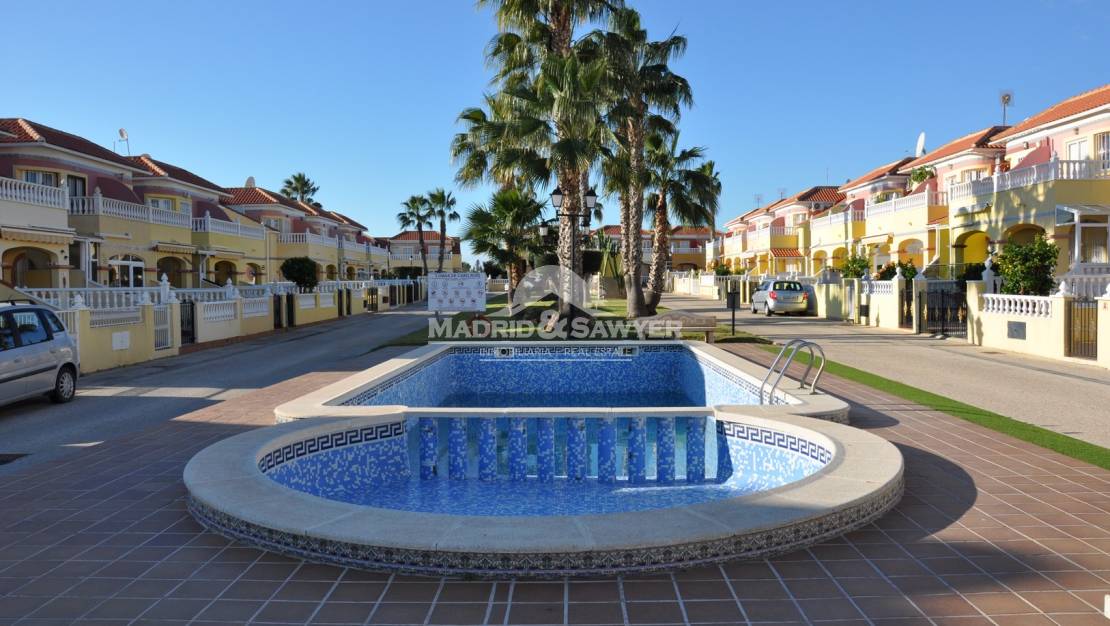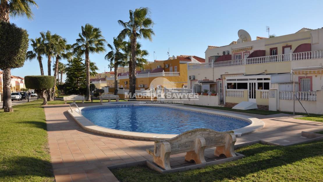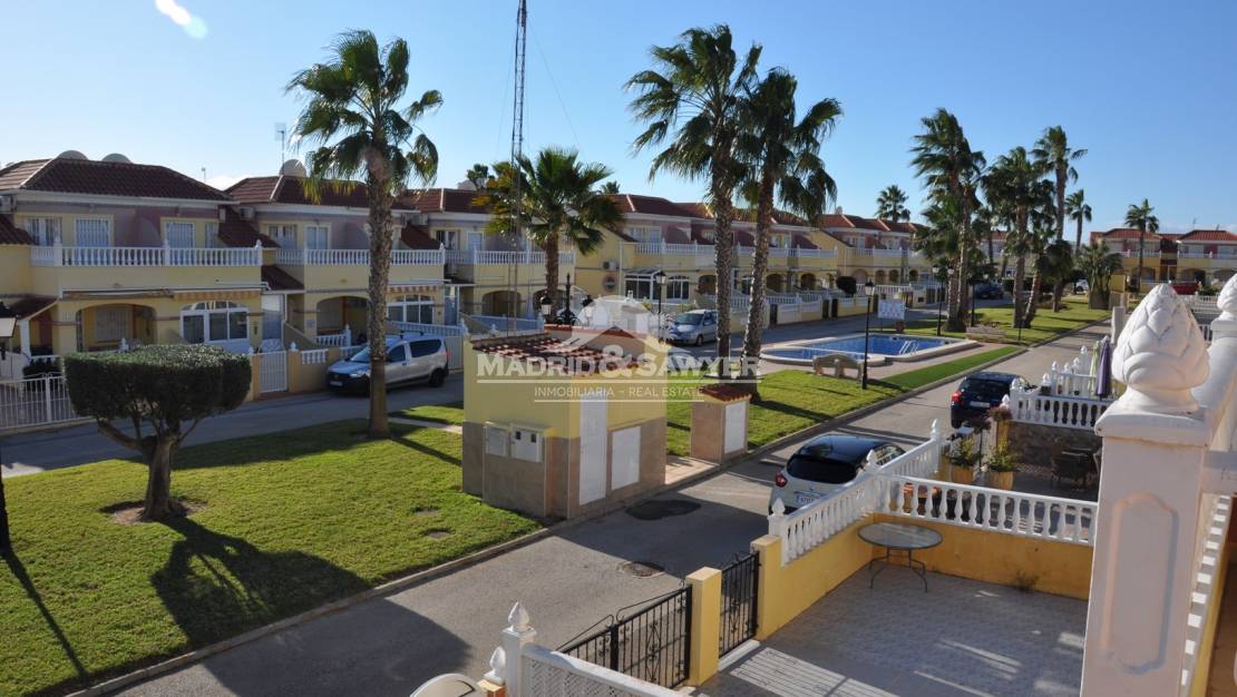 Fabulosa casa de 2 dormitorios y 2 baños para alquiler en La Regia! Esta casa se encuentra en un complejo cerrado con piscina comunitaria a poca distancia de todos los servicios. Al entrar en la vivienda nos encontramos en el salón-comedor con la cocina americana al fondo y acceso a un dormitorio, también hay un aseo en la planta baja. Al subir las escaleras nos encontramos los 2 dormitorios, uno con cama de matrimonio y el 2º dormitorio con 2 camas simples, también esta el cuarto de baño completo. A unos 2 minutos en coche del centro comercial La Zenia Boulevard, 10 minutos de tres campos de golf de 18 hoyos y unos 40 minutos en coche de los aeropuertos de Alicante y Corvera.