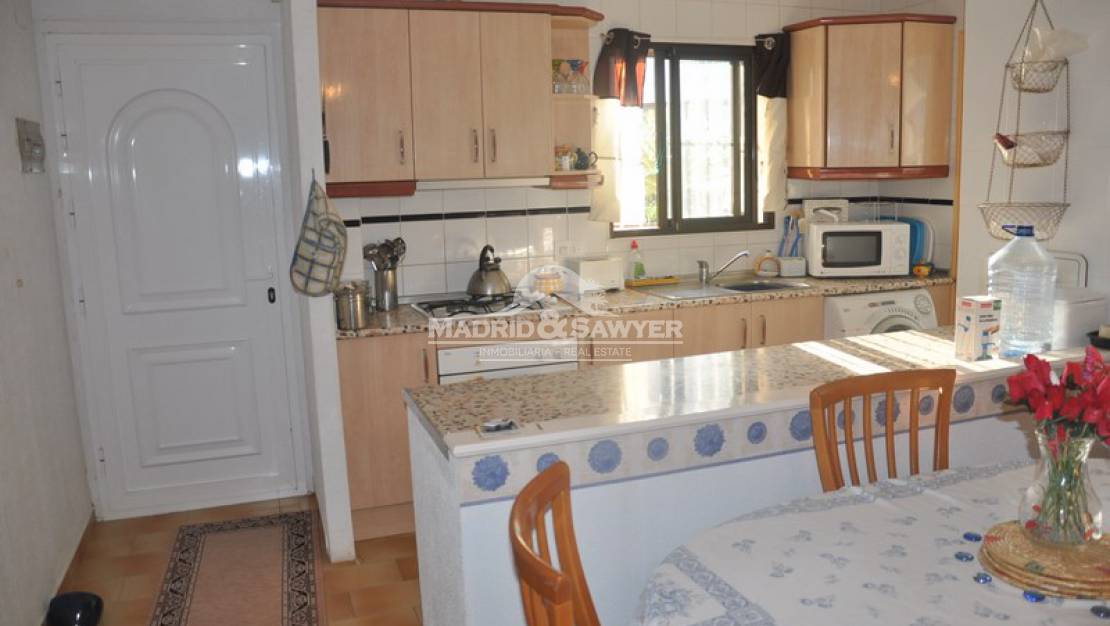 Bungalow en planta alta, muy tranquilo, dos dormitorios y un baño, en muy buen estado, el entorno es de lujo, situado en la urbanización de cabo Roig, a tan solo 5 minutos de la playa de Cala Capitán y puerto deportivo cerca de todos los servicios y zonas de ocio, buena conexión con la N-332 y paradas de autobús. En coche a 5 minutos de uno de los centros comerciales mas grandes de Europa, "La Zenia Boulevard" donde podrá disfrutar de sus atractivas tiendas, su gastronomía y espectáculos para grandes y pequeños.