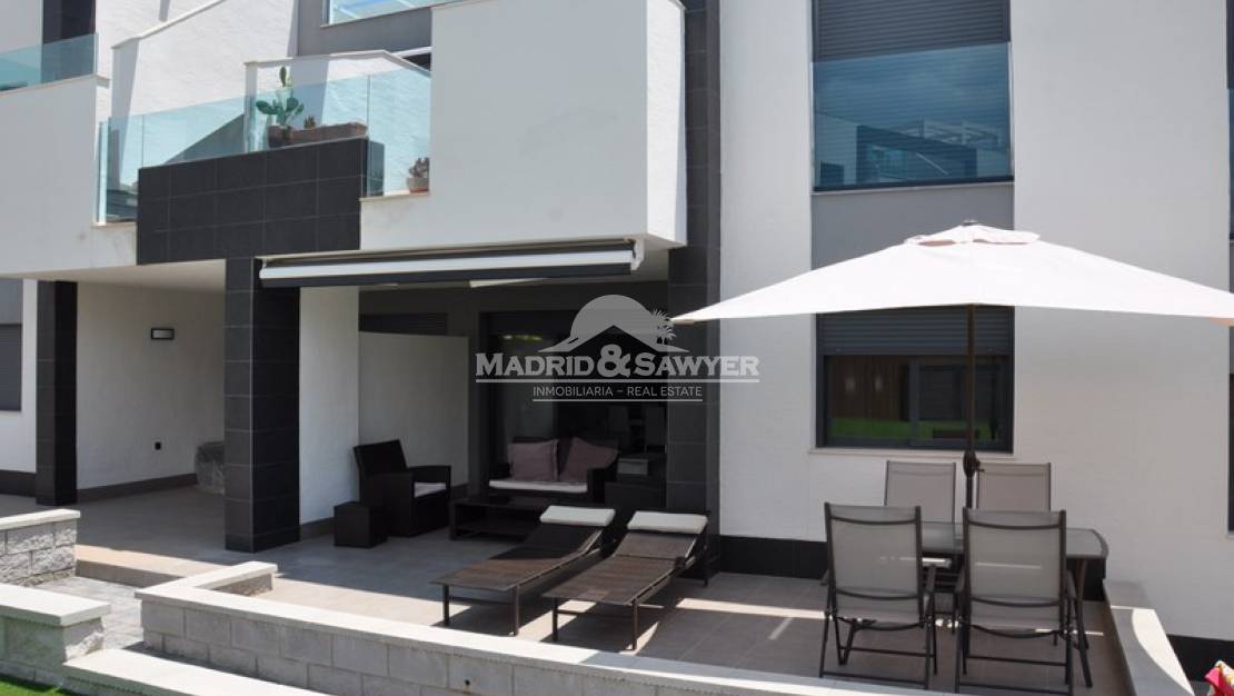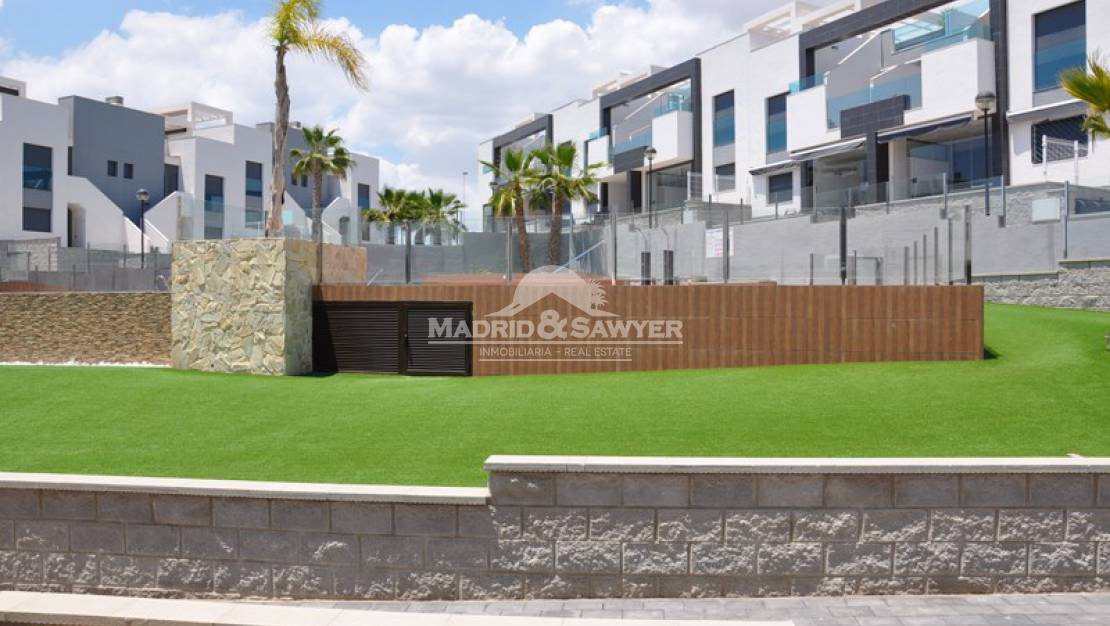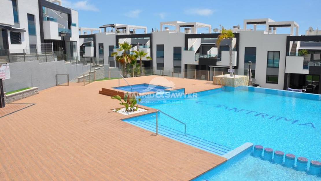 Bungalow de plain-pied avec deux chambres et deux salles de bains avec terrasse équipée de mobilier de jardin. Cette propriété est située dans le Residential Oasis Beach VIII à Punta Prima. À l'entrée, vous avez un petit jardin. La cuisine entièrement équipée avec des appareils se trouve à droite de la maison. À l'arrière-plan, la salle à manger avec accès à la terrasse et à l'espace communautaire. Sur la gauche se trouvent deux chambres et deux salles de bain, la chambre principale a la salle de bain en suite. La maison est vendue partiellement meublée, dispose de la climatisation et d'un parking souterrain. La résidence dispose d'une piscine pour adultes et enfants, d'un jacuzzi et de grands espaces verts. Proche de tous les services.