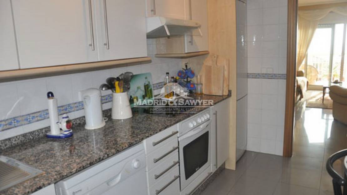 Appartement situé au premier étage avec deux chambres et deux salles de bains. À l'entrée se trouve le salon très lumineux avec accès au balcon donnant sur la piscine commune et la mer, une cuisine avec galerie et deux chambres séparées par une salle de bains. La maison dispose d'une place de parking. Proche de tous les services.