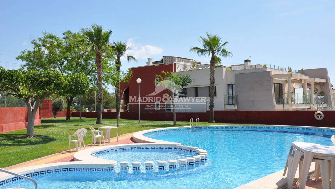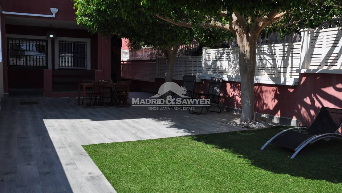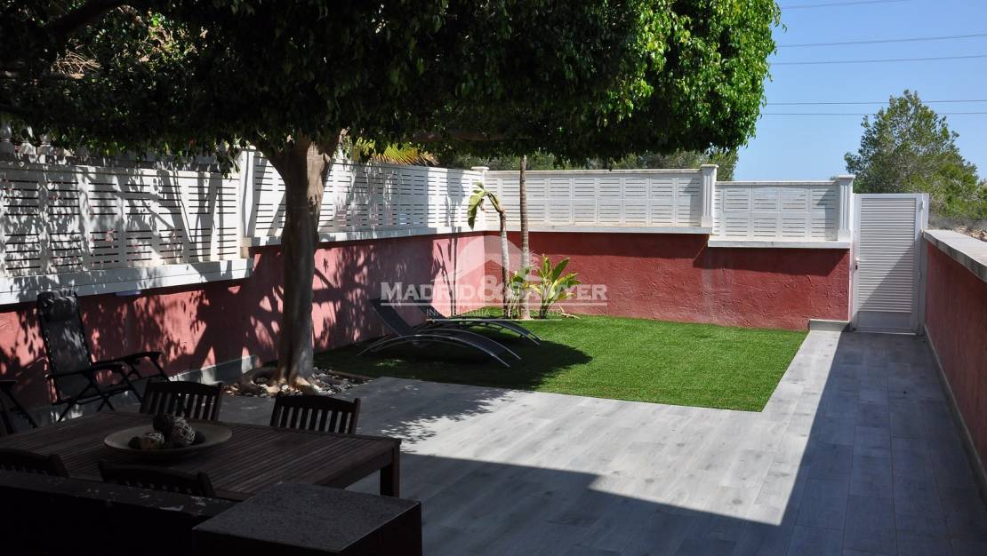 Cet appartement de 2 chambres et 2 salles de bain est disponible à la location, avec un grand jardin! En entrant, on accède au salon-salle à manger, avec la cuisine entièrement équipée à l'arrière et l'accès à une terrasse arrière. À droite du salon se trouvent les deux chambres, l'une avec un lit double et l'autre avec deux lits simples. Il y a deux salles de bain complètes, l'une avec douche et l'autre avec baignoire. Il y a également une piscine commune. La maison est située dans un quartier très calme, à proximité de toutes les commodités.