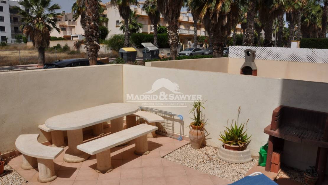 Ce charmant appartement, situé à Aguamarina, Cabo Roig, à seulement 100 mètres de la plage, est à vendre ! La propriété dispose de deux entrées : par la résidence privée ou directement depuis la rue. En entrant, on trouve le hall d'entrée avec le salon en face et, à droite, la cuisine entièrement équipée. Celle-ci donne accès à une terrasse arrière avec placards de rangement. À droite du salon se trouvent les deux chambres (la chambre principale dispose d'une salle de bains attenante) et la salle d'eau. En traversant le salon, on accède au jardin avant avec barbecue et accès à la rue. La résidence sécurisée dispose de deux belles piscines et d'un grand jardin commun. La propriété est idéalement située : bars, restaurants, pharmacie, coiffeurs, supermarché et cabinet médical sont accessibles à pied, vous évitant ainsi la voiture. Une compagnie de taxis se trouve au bout de la rue et le service de bus local dessert toute la Costa Blanca. Les aéroports d'Alicante et de Corvera sont à environ 40 minutes en voiture, il y a trois terrains de golf de 18 trous à seulement 10 minutes en voiture et le centre commercial populaire Zenia Boulevard est à seulement 5 minutes en voiture.