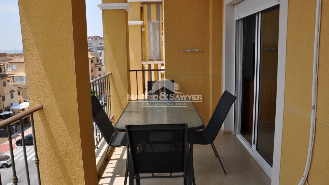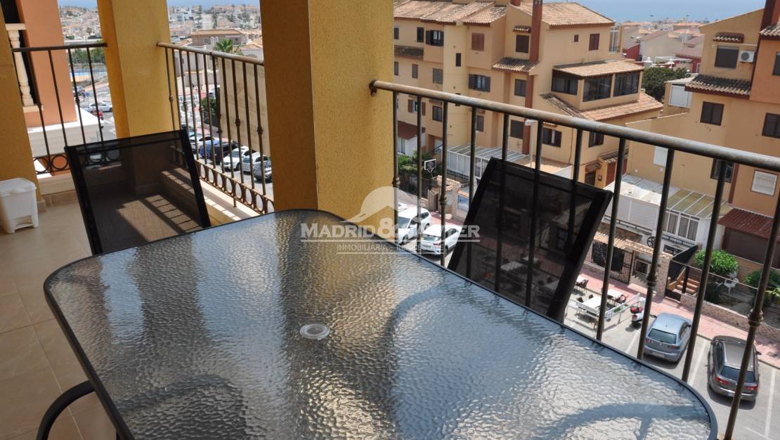 Appartement situé à Torrevieja, avec deux chambres, une salle de bain, une cuisine américaine entièrement équipée, entièrement meublée et également avec climatisation, un salon-salle à manger avec accès à la terrasse, un parking et une piscine commune.