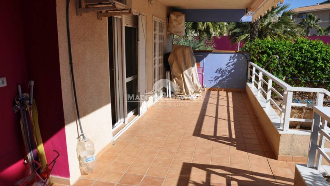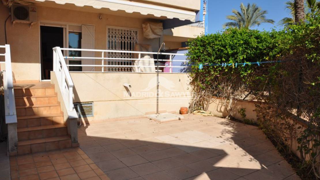 We present this ground floor with two bedrooms and a bathroom in the well-known residential Calas de Campoamor in Cabo Roig. At the entrance we find on the left the fully equipped kitchen from which you access an interior patio. On the right as you access the house we have the living room, two bedrooms and a bathroom. From the living room and the master bedroom you can access a large terrace overlooking the common area of the residential. The house is sold fully furnished with garage and storage room. The residential has a communal pool, paddle tennis courts, playground for children and barbecues. Aguamarina is an urbanization well known for its proximity to the beach of Cabo Roig, the marina and all the services that can be found around both restaurants, coffee shops, supermarkets ... etc. La Zenia Boulevard shopping center is only 10 minutes away by car.