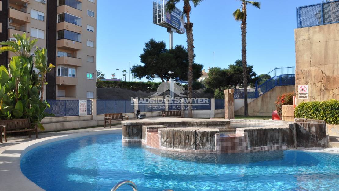 This lovely apartment situated in a private residential complex with two bedrooms, one bathroom, fully equipped kitchen, large balcony and private solarium, garage and communal pool is for sale. Upon entering the property we find ourselves in the hallway which leads to the lounge and american, fully equipped kitchen. The lounge has large patio windows which lead onto a sunny balcony. To the right of the lounge are the 2 bedrooms, one with a double bed and the second bedroom with 2 single beds and there is a complete bathroom. Close to all amenities and the shopping centre La Zenia Boulevard is only 10 minutes away walking, there are three 18 hole golf courses only 10 minutes away by car and the Alicante and Corvera airports are only 40 minutes away by car.