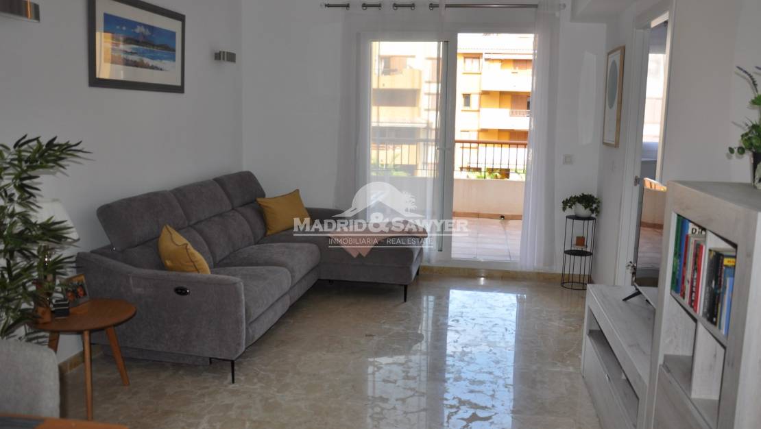 This fantastic apartment is available for winter & summer rentals. Located in Punta Prima just 150m from the beach and with an underground parking space. Upon entering the house we have the fully equipped kitchen on the right, infront is the living-dining room with access to the large balcony overlooking the communal pool. To the right of the kitchen is the second bedroom with 2 single beds and there is a full bathroom. To the right of the living room is the master bedroom with a double bed and its own bathroom. The complex is the well-known La Recoleta, known for its high qualities. Just a 10-minute drive from La Zenia Boulevard shopping center, 10 minutes by car from several golf courses and about 40 minutes by car from Alicante and Corvera airports.